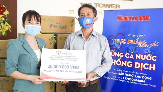 On the afternoon of June 7, 2021, Hung Hau Heart Foundation(HHF) and representatives of Van Hien University donated 20 million VND and 200 kg of noodles to support the program "Free food with the whole country against epidemic" organized by Laborer Newspaper.