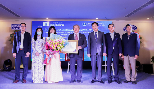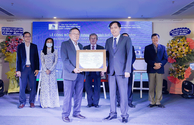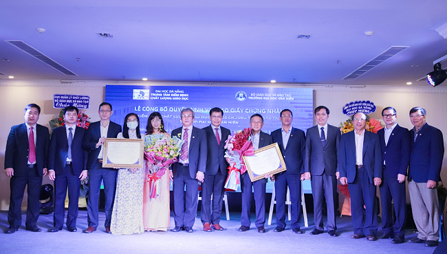 Representatives of the Quality Control Department - Ministry of Education and Training, and the Center for Education Accreditation – The University of Danang congratulate the University on obtaining the Certificate of Educational Quality Accreditation for 02 university degree training programs in Information Technology and Hotel Management