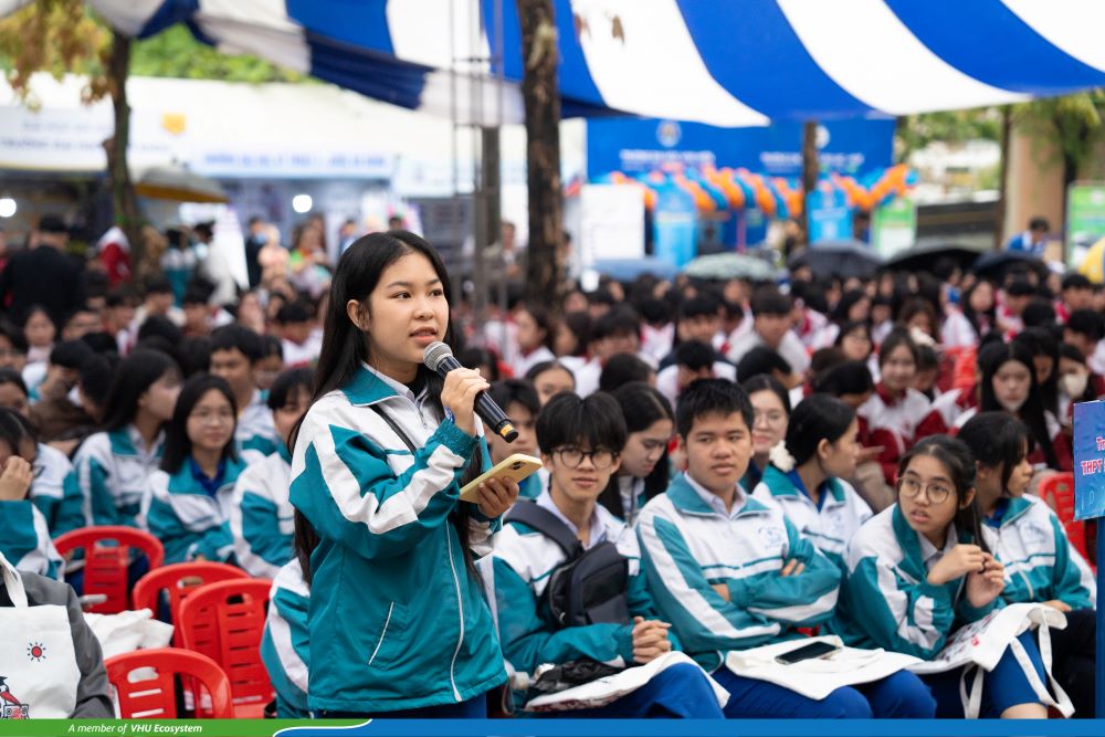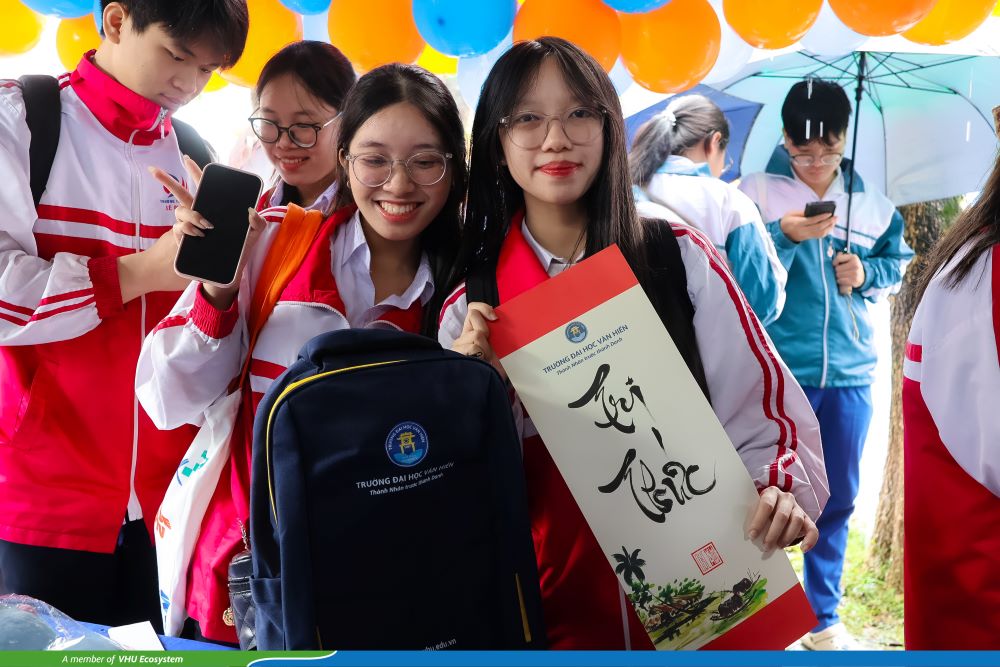 Not stopping at providing information, VHU also brought delightful personalized experiences. Alongside practical supporting gifts like backpacks and notebooks, the custom calligraphy area attracted a large number of candidates. Here, each student could hand-pick words that carry their own wishes and aspirations for the future to keep as a souvenir. Seeing the radiant smiles of the students as they received their desired calligraphy pieces and lucky gifts, VHU believes that the resilience of the people from the "Quang" land will help them successfully conquer their first-choice aspirations.